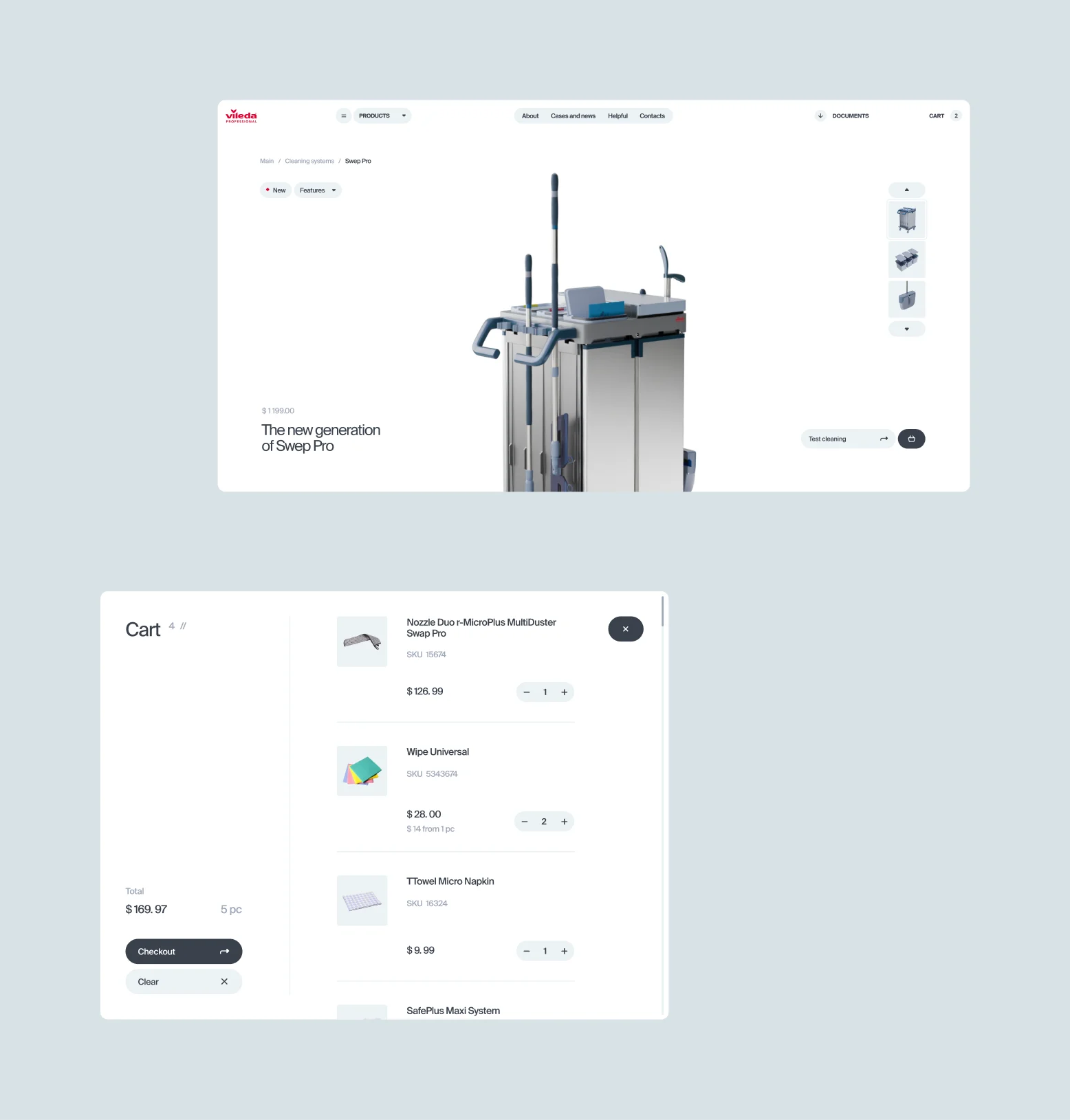 Перед нами стояла задача: передать премиальность и логику использования уборочного инвентаря бренда Vileda с помощью 3D-графики. Важно было не просто визуализировать предметы, а показать, как с ними взаимодействует пользователь, как работает каждая деталь, и в чём заключается преимущество продукта по сравнению с конкурентами. Визуализация должна была выполнять сразу несколько функций: быть технически точной, эстетически приятной и коммерчески полезной.