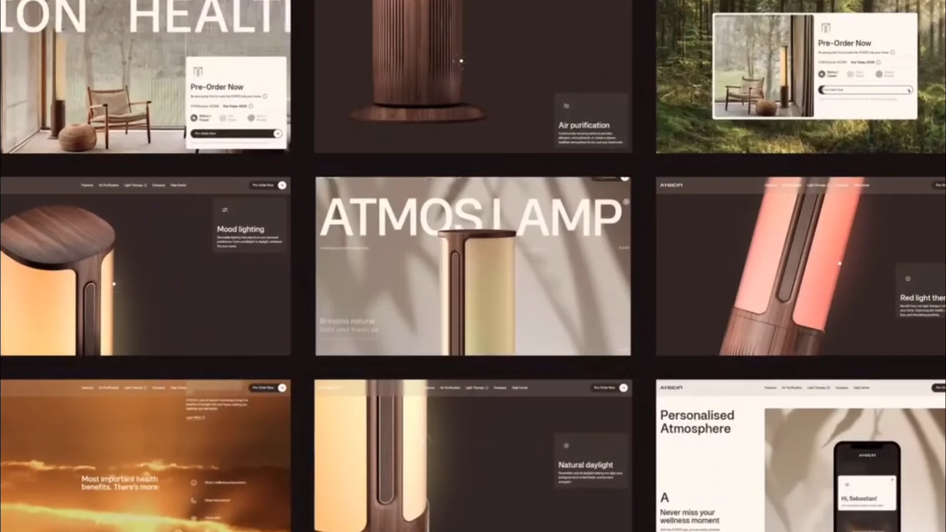 Сайт, задача которого — показать преимущества лампы Atmos: её эффективность, эстетику и гармоничное сочетание с интерьером. Визуальная концепция основана на образах леса и естественного света, создающих ощущение тепла и здоровья.