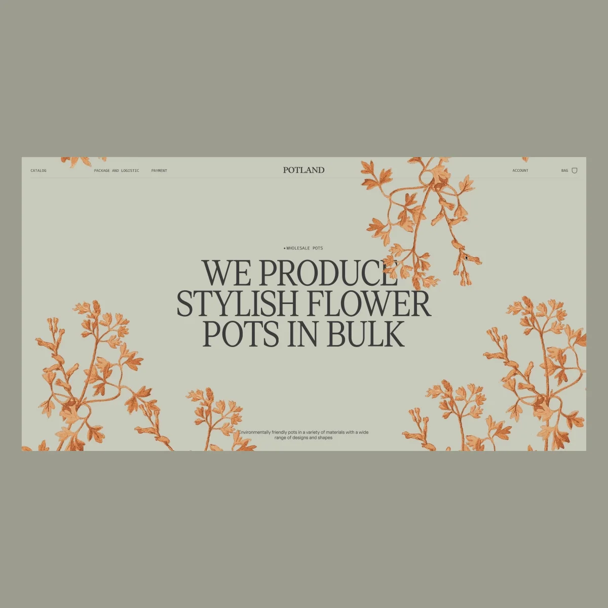 Сайт по продаже цветочных горшков оптом для европейского рынка. Один из наших ярких представителей, где мы применяем пастельные оттенки. Все последующие примеры мы нашли в интернете.