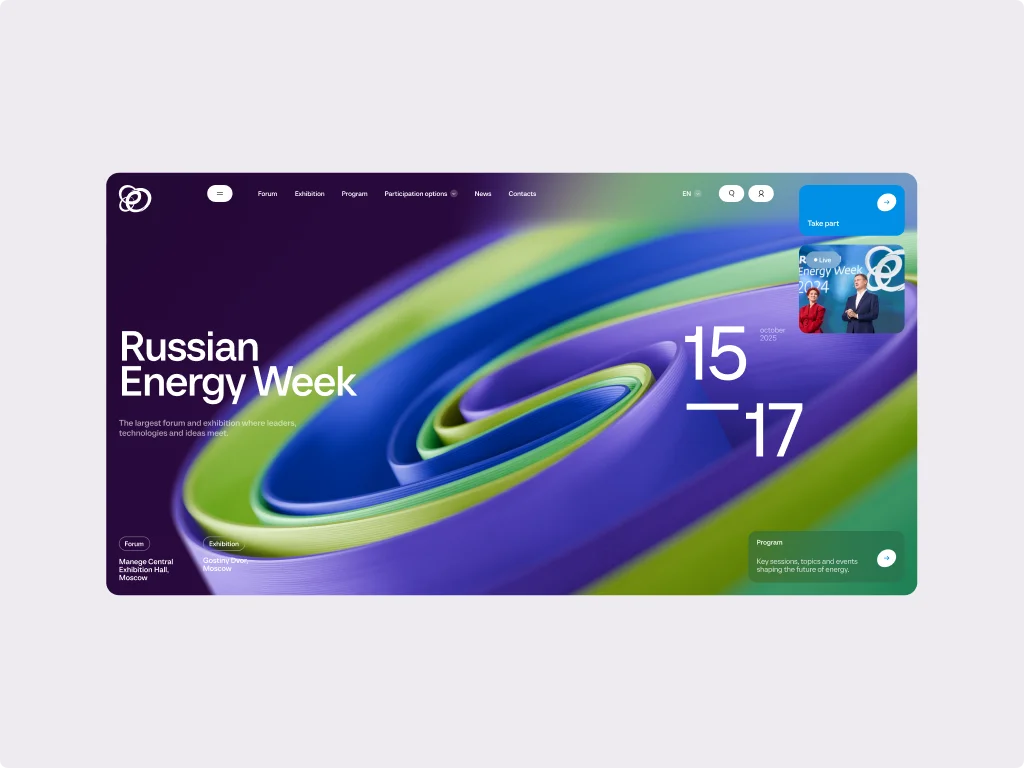Клиенту нужен был сайт, который подчеркнет статус крупного экономического события в энергетике и при этом останется удобным для разных категорий участников.