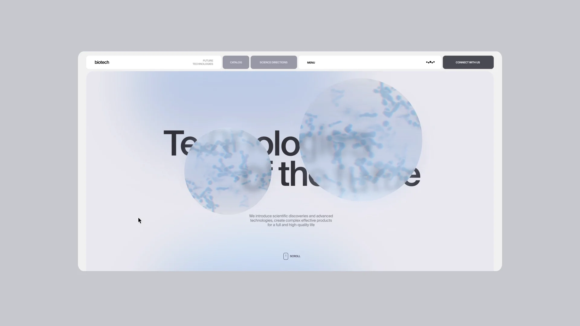 Сайт в сфере биотеха для компании Артлайф. Во главе визуала — линзы микроскопа, которые реализованы с помощью webgl