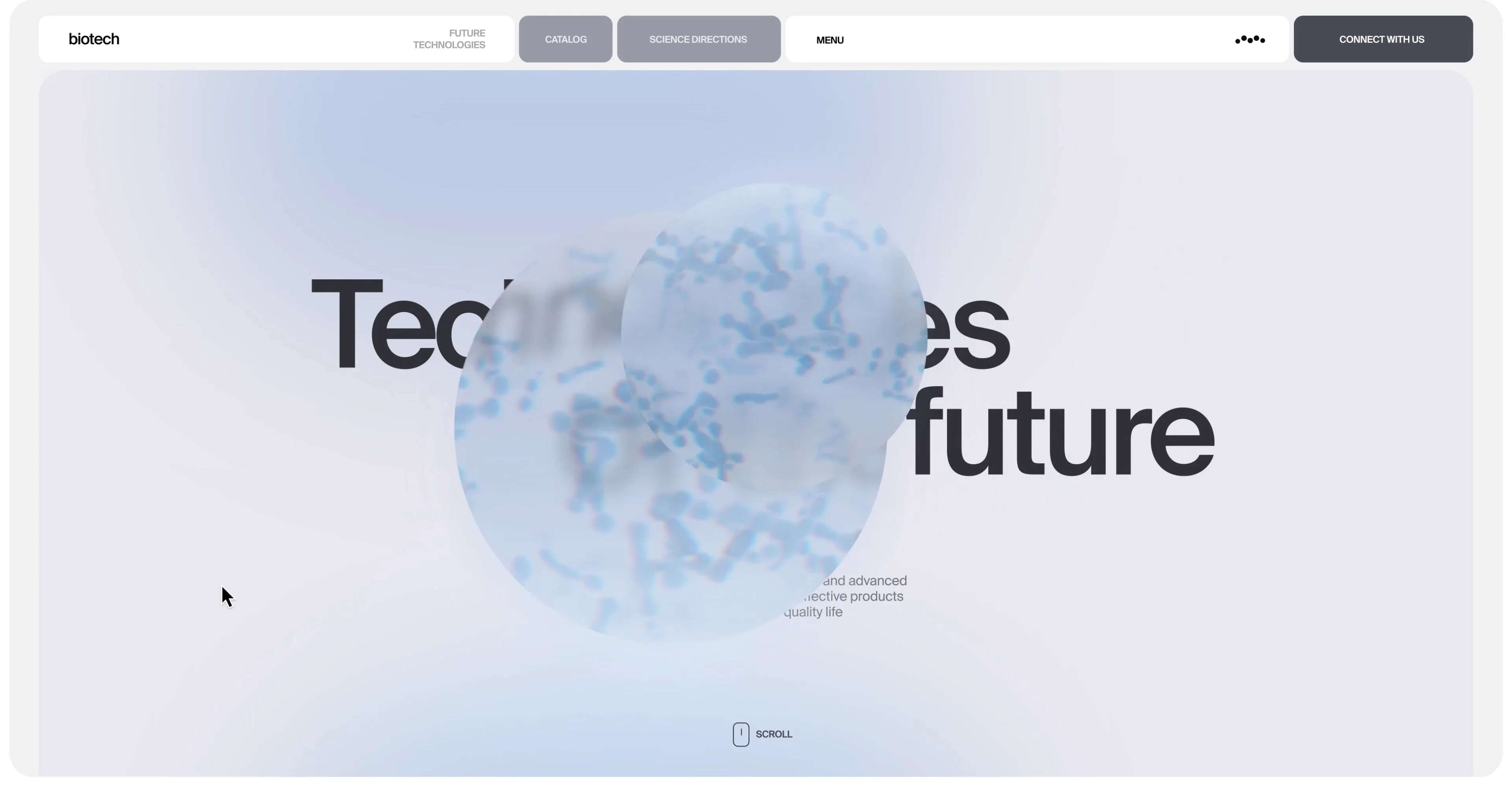 Проект Artlife стал лабораторией оптики и света. Пользователь словно смотрел на мир бактерий через линзу микроскопа. Эффект линзы реализован на шейдерах — блюр, преломление, искажения, RGB-shift.