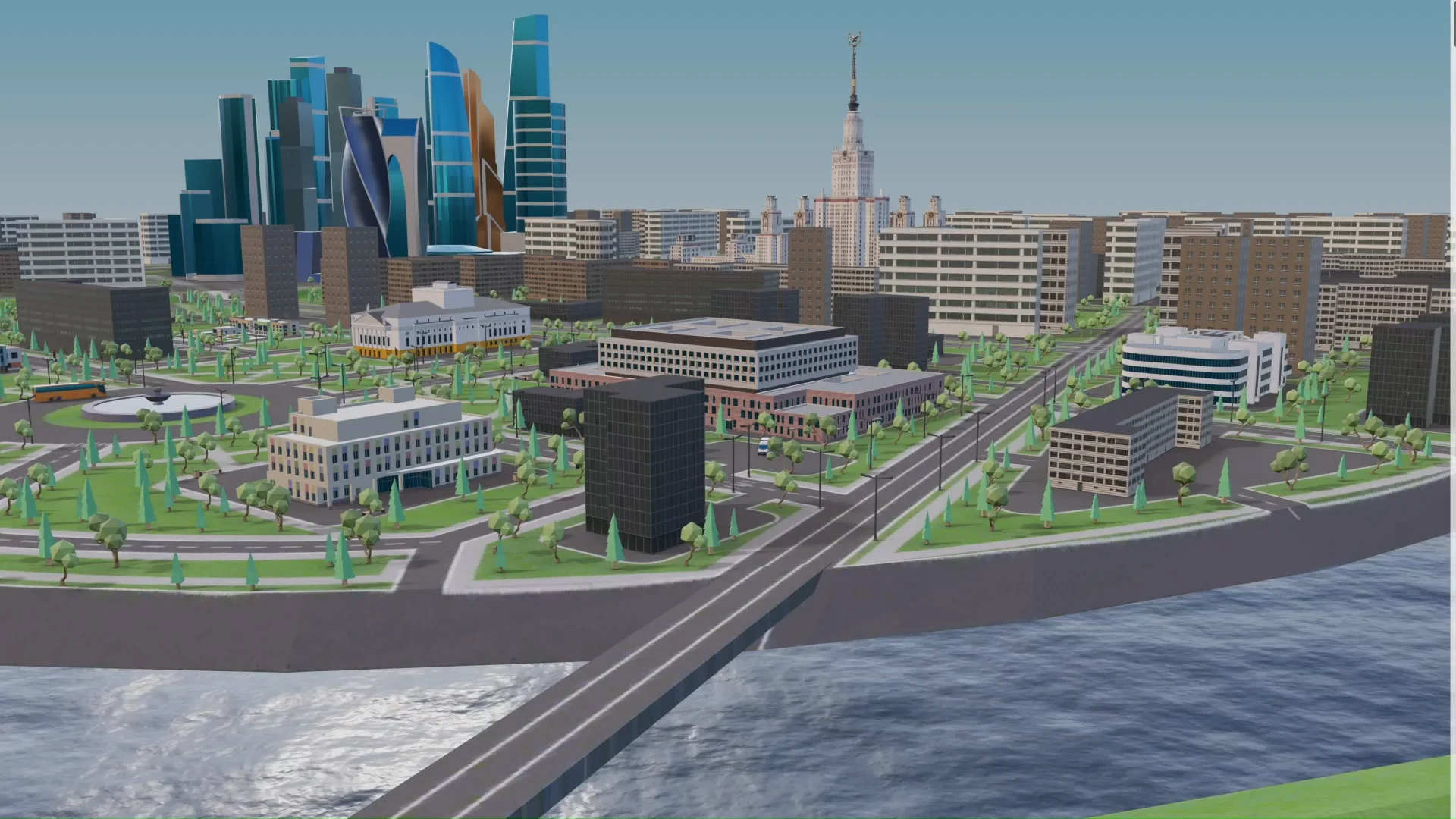 Проект РСИ — первая крупная сцена: виртуальная Москва. Пользователь перемещался по городу, рассматривал здания, кликал на объекты. Мы использовали рейкастинг, запекали свет, применяли GPU-инстансинг. Так вес сцены снизился на 80%.