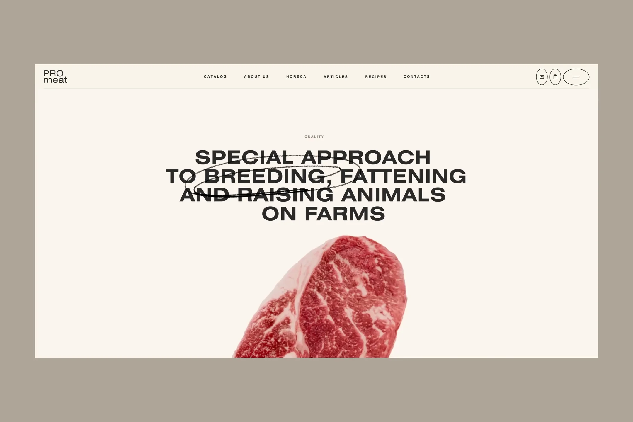 ProMeat — проект, где главный акцент сделан на главном продукте компании — мясе. Мы начали с секвенции изображений, но результат не устроил: долгая загрузка, ступенчатый скролл. Мы заменили секвенцию на WebGL — и всё стало иначе: мгновенная загрузка, идеальная плавность.